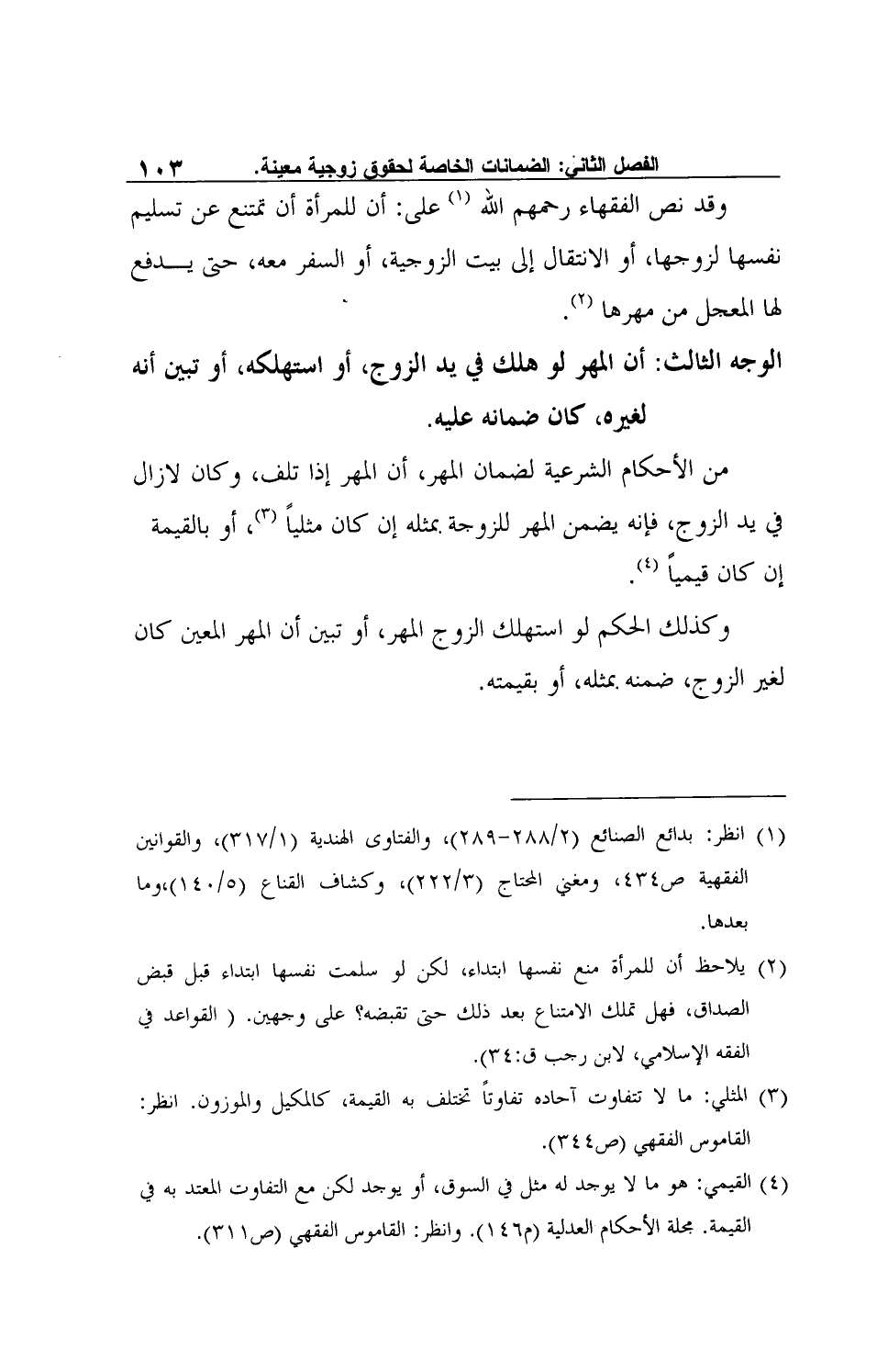 2 يلاحظ أن للمرأة منع نفسها ابتداء، لكن لو سلمت نفسها ابتداء قبل قبض الصداق، فهل تملك الامتناع بعد ذلك حتى تقبضه؟ على وجهين. (القواعد في الفقه الإسلامي، لابن رجب ق: 34) .