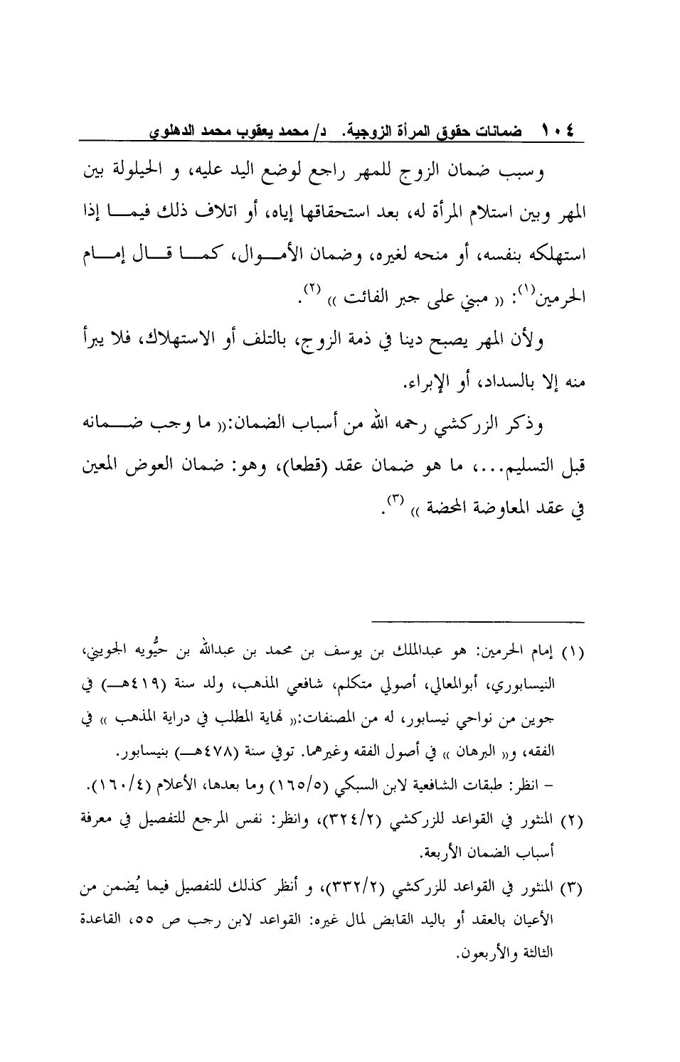2 المنثور في القواعد للزركشي (2/324) ، وانظر: نفس المرجع للتفصيل في معرفة أسباب الضمان الأربعة.