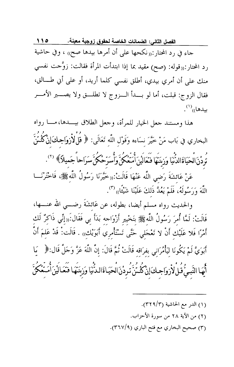 عَنْ عَائِشَةَ رَضِي اللَّه عَنْهَا قَالَتْ: "خَيَّرَنَا رَسُولُ اللَّهِ صلى الله عليه وسلم، فَاخْتَرْنَا اللَّهَ وَرَسُولَهُ، فَلَمْ يَعُدَّ ذَلِكَ عَلَيْنَا شَيْئًا"3.