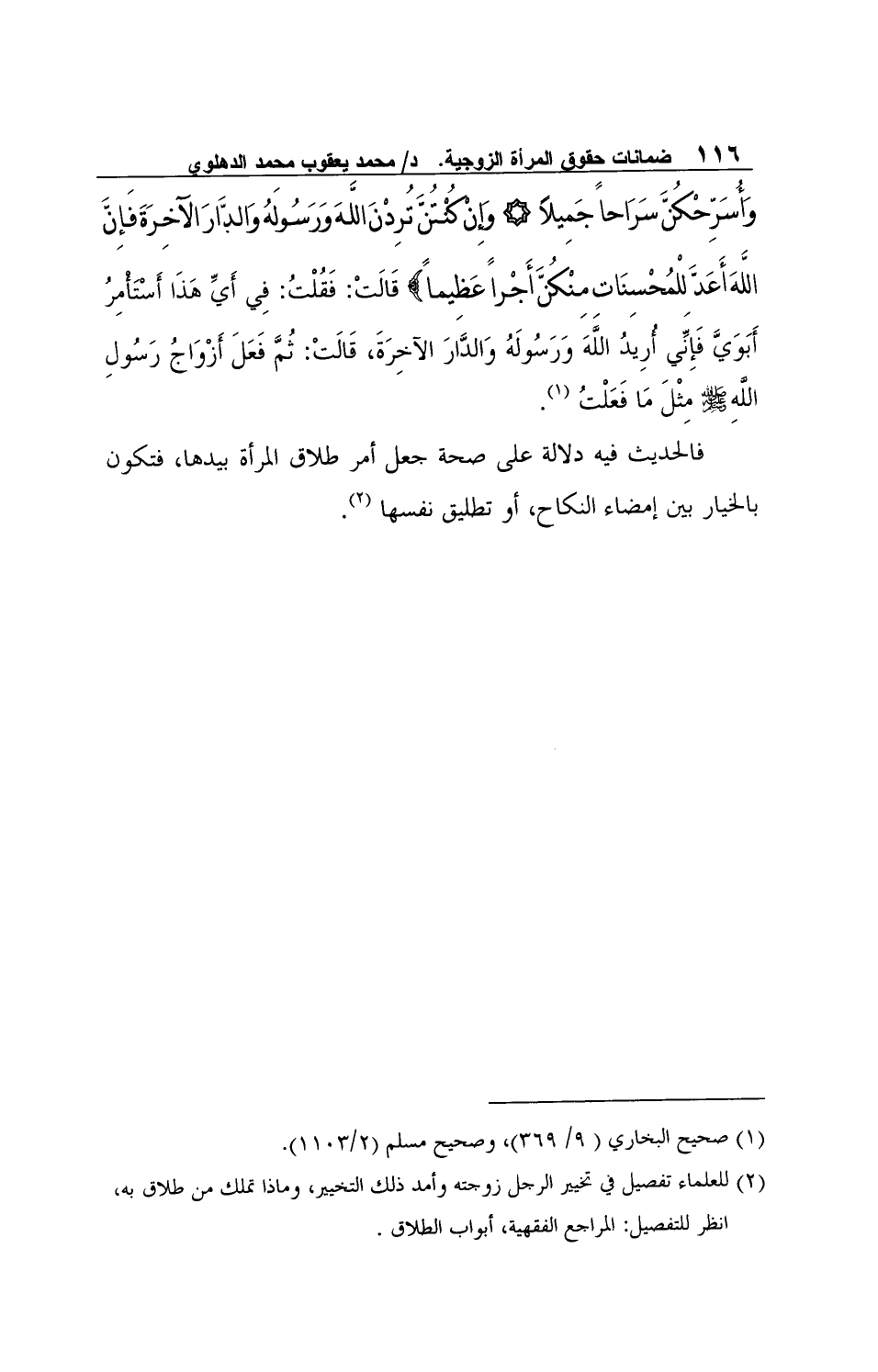 2 للعلماء تفصيل في تخيير الرجل زوجته وأمد ذلك التخيير، وماذا تملك من طلاق به، انظر للتفصيل: المراجع الفقهية، أبواب الطلاق.