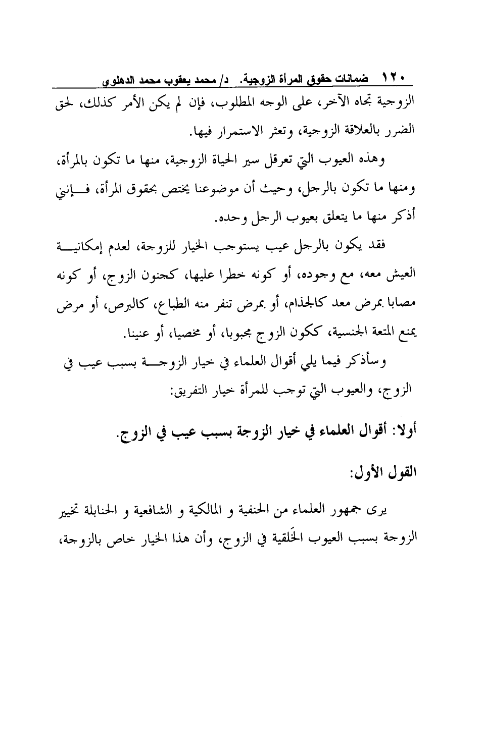 وهذه العيوب التي تعرقل سير الحياة الزوجية، منها ما تكون بالمرأة، ومنها ما تكون بالرجل، وحيث أن موضوعنا يختص بحقوق المرأة، فإنني أذكر منها ما يتعلق بعيوب الرجل وحده.