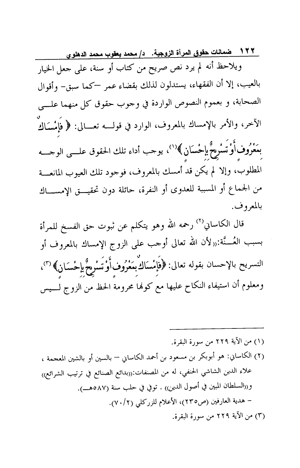2 الكاساني: هو أبوبكر بن مسعود بن أحمد الكاساني – بالسين أو بالشين المعجمة، علاء الدين الشاشي الحنفي، له من المصنفات: "بدائع الصنائع في ترتيب الشرائع" و"السلطان المبين في أصول الدين". توفي في حلب سنة (587هـ) . هدية العارفين (ص235) ، الأعلام للزركلي (2/70) .