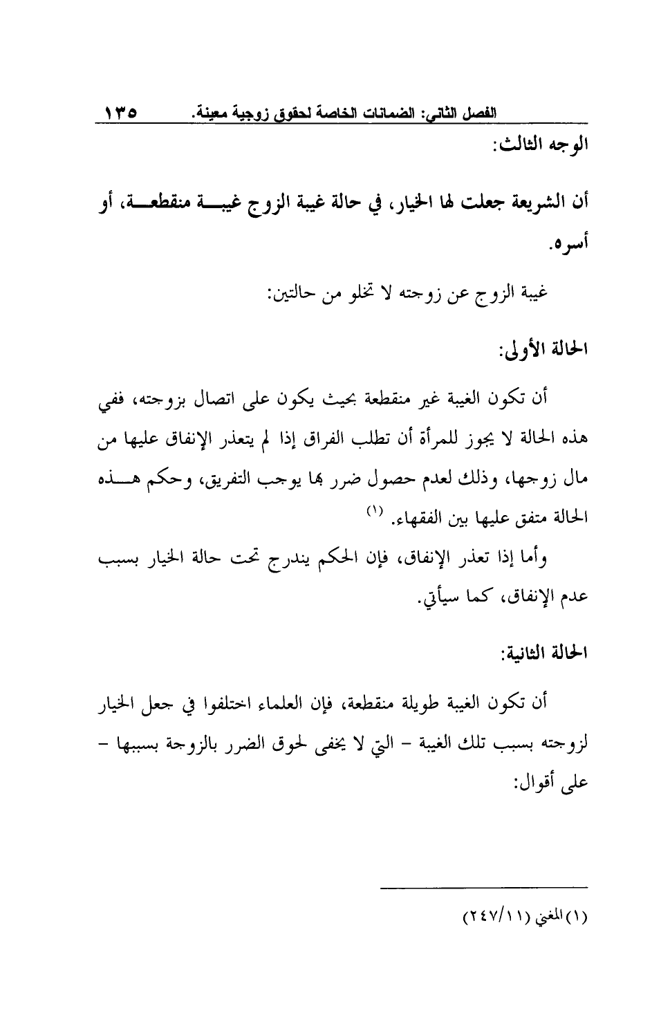 الحالة الثانية: أن تكون الغيبة طويلة منقطعة، فإن العلماء اختلفوا في جعل الخيار لزوجته بسبب تلك الغيبة - التي لا يخفى لحوق الضرر بالزوجة بسببها - على أقوال: