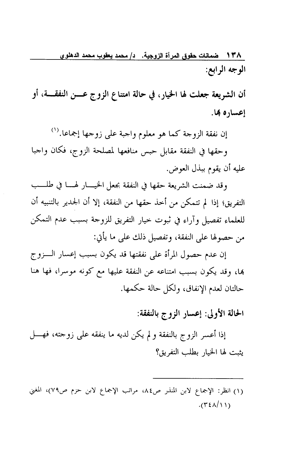 الحالة الأولى: إعسار الزوج بالنفقة: