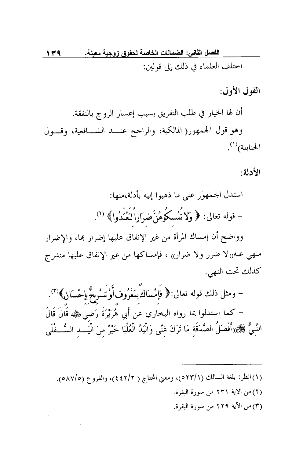 وواضح أن إمساك المرأة من غير الإنفاق عليها إضرار بها، والإضرار منهي عنه "لا ضرر ولا ضرار "، فإمساكها من غير الإنفاق عليها مندرج كذلك تحت النهي.