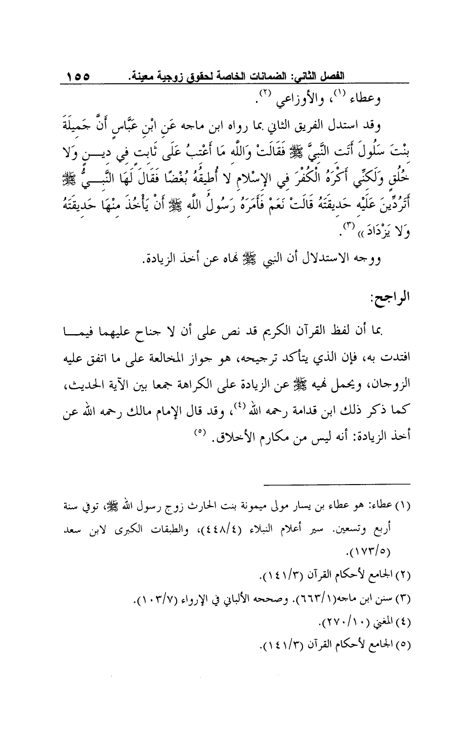 بما أن لفظ القرآن الكريم قد نص على أن لا جناح عليهما فيما افتدت به، فإن الذي يتأكد ترجيحه، هو جواز المخالعة على ما اتفق عليه الزوجان، ويحمل نهيه صلى الله عليه وسلم عن الزيادة على الكراهة جمعا بين الآية الحديث، كما ذكر ذلك ابن قدامة رحمه الله4، وقد قال الإمام مالك رحمه الله عن أخذ الزيادة: أنه ليس من مكارم الأخلاق.5