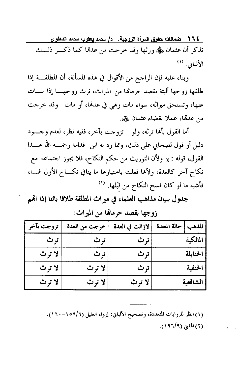 جدول ببيان مذاهب العلماء في ميراث المطلقة طلاقا بائنا إذا اتهم زوجها بقصد حرمانها من الميراث: