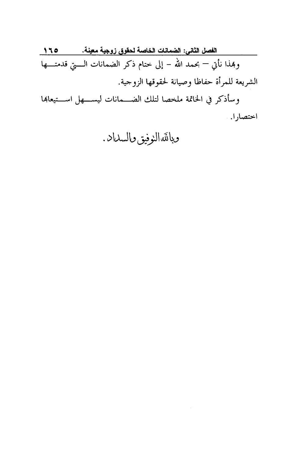 وبهذا نأتي - بحمد الله - إلى ختام ذكر الضمانات التي قدمتها الشريعة للمرأة حفاظا وصيانة لحقوقها الزوجية.