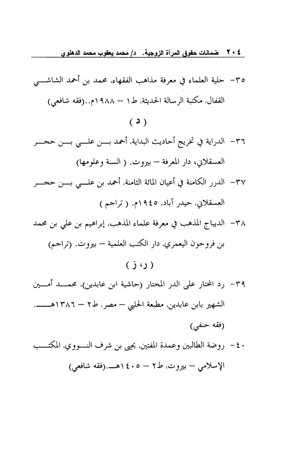 39- رد المحتار على الدر المختار (حاشية ابن عابدين) ، محمد أمين الشهير بابن عابدين، مطبعة الحلبي – مصر، ط2 – 1386هـ. (فقه حنفي)