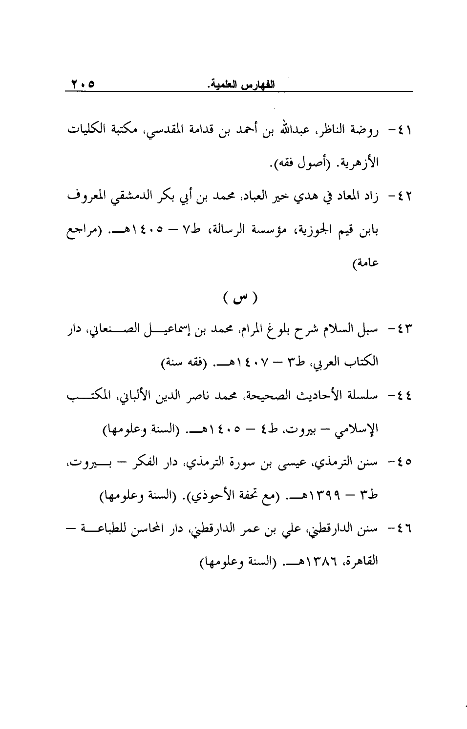 42- زاد المعاد في هدي خير العباد، محمد بن أبي بكر الدمشقي المعروف بابن قيم الجوزية، مؤسسة الرسالة، ط7 – 1405هـ. (مراجع عامة)