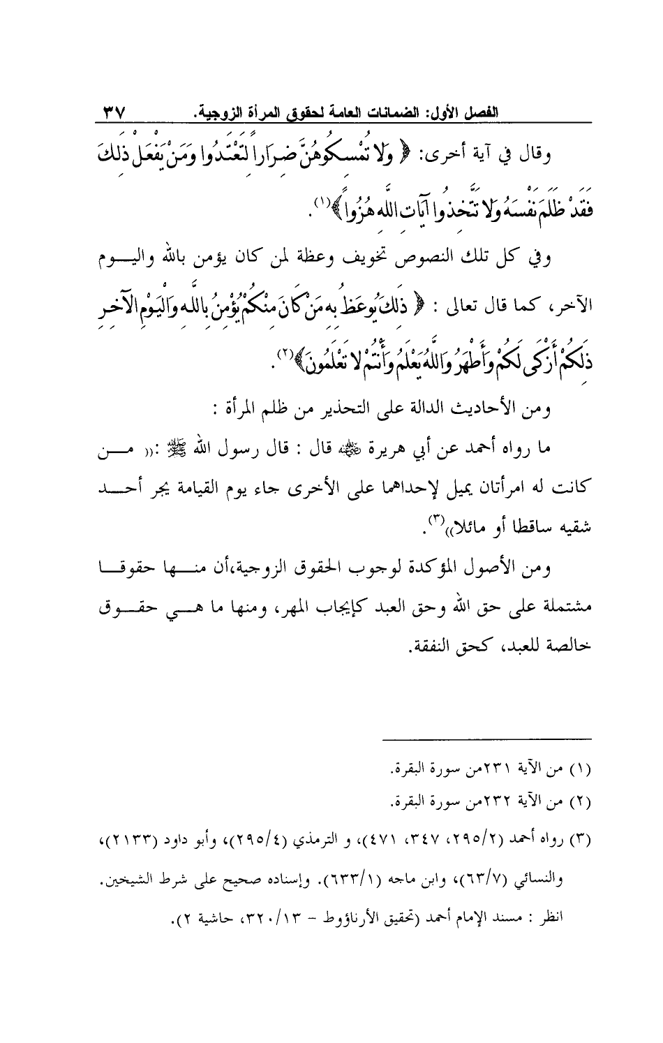 وقال في آية أخرى: {وَلا تُمْسِكُوهُنَّ ضِرَاراً لِتَعْتَدُوا وَمَنْ يَفْعَلْ ذَلِكَ فَقَدْ ظَلَمَ نَفْسَهُ وَلا تَتَّخِذُوا آيَاتِ اللَّهِ هُزُواً} 1.