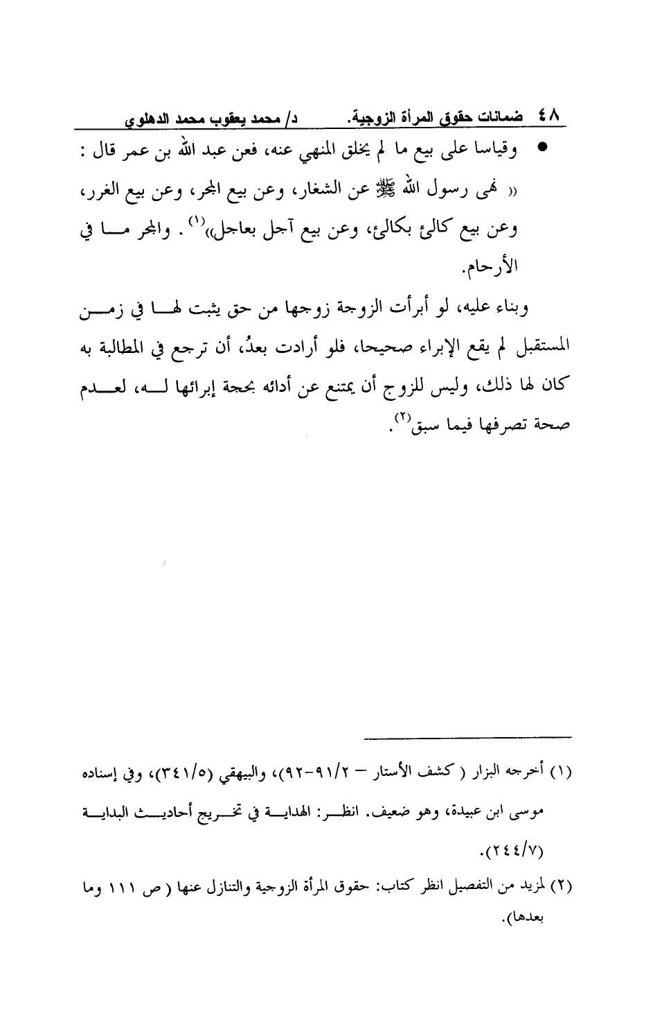2 لمزيد من التفصيل انظر كتاب: حقوق المرأة الزوجية والتنازل عنها (ص 111 وما بعدها) .