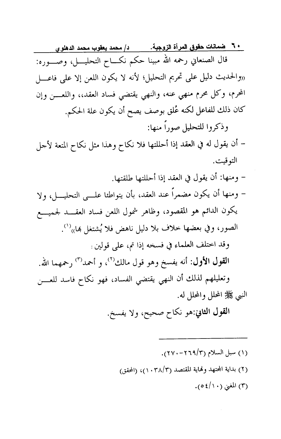 وتعليلهم لذلك أن النهي يقتضي الفساد، فهو نكاح فاسد للعن النبي صلى الله عليه وسلم المحلل والمحلل له.