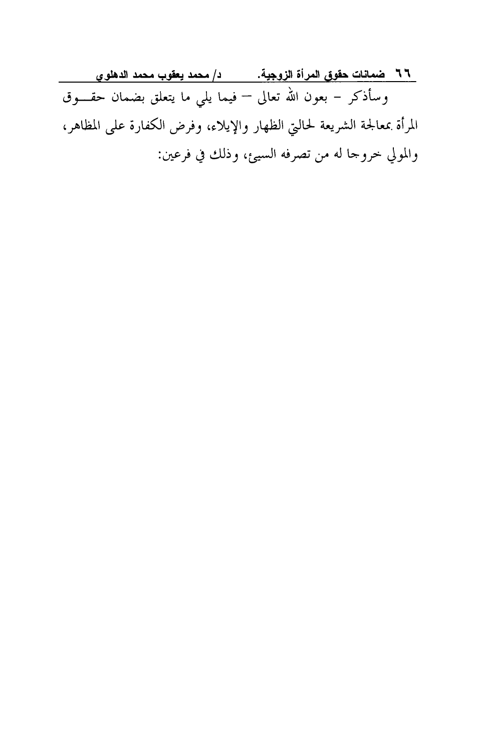 وسأذكر - بعون الله تعالى - فيما يلي ما يتعلق بضمان حقوق المرأة بمعالجة الشريعة لحالتي الظهار والإيلاء، وفرض الكفارة على المظاهر، والمولي خروجا له من تصرفه السيئ، وذلك في فرعين: