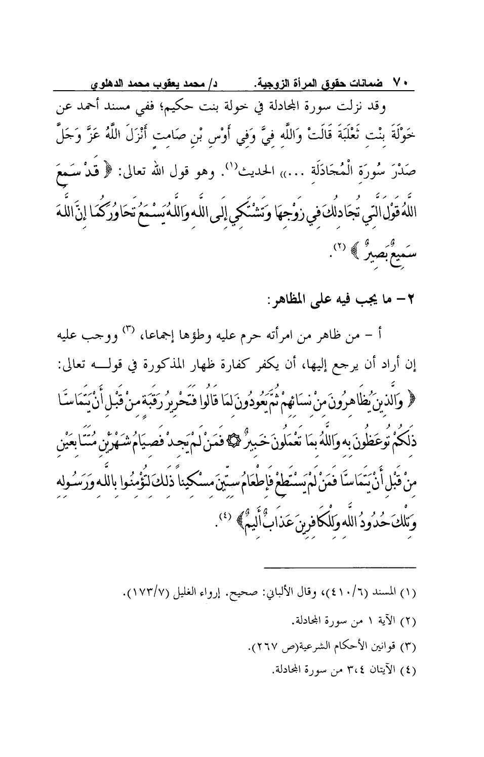 أ - من ظاهر من امرأته حرم عليه وطؤها إجماعا،3 ووجب عليه إن أراد أن يرجع إليها، أن يكفر كفارة ظهار المذكورة في قوله تعالى: {وَالَّذِينَ يُظَاهِرُونَ مِنْ نِسَائِهِمْ ثُمَّ يَعُودُونَ لِمَا قَالُوا فَتَحْرِيرُ رَقَبَةٍ مِنْ قَبْلِ أَنْ يَتَمَاسَّا ذَلِكُمْ تُوعَظُونَ بِهِ وَاللَّهُ بِمَا تَعْمَلُونَ خَبِيرٌ فَمَنْ لَمْ يَجِدْ فَصِيَامُ شَهْرَيْنِ مُتَتَابِعَيْنِ مِنْ قَبْلِ أَنْ يَتَمَاسَّا فَمَنْ لَمْ يَسْتَطِعْ فَإِطْعَامُ سِتِّينَ مِسْكِيناً ذَلِكَ لِتُؤْمِنُوا بِاللَّهِ وَرَسُولِهِ وَتِلْكَ حُدُودُ اللَّهِ وَلِلْكَافِرِينَ عَذَابٌ أَلِيمٌ} 4.
