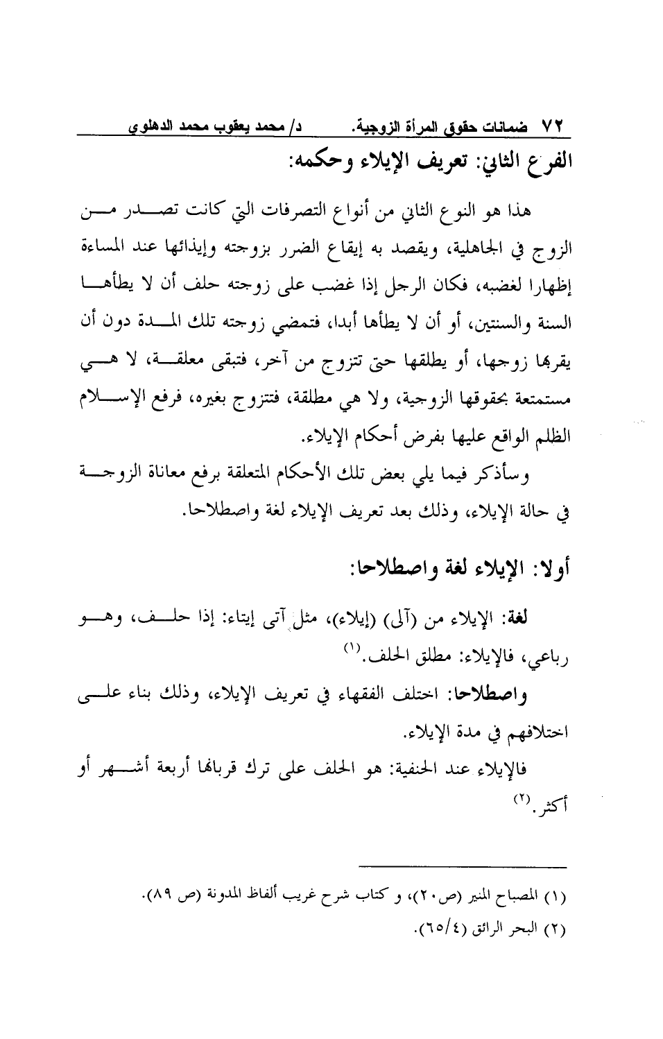 الفرع الثاني: تعريف الإيلاء وحكمه:
