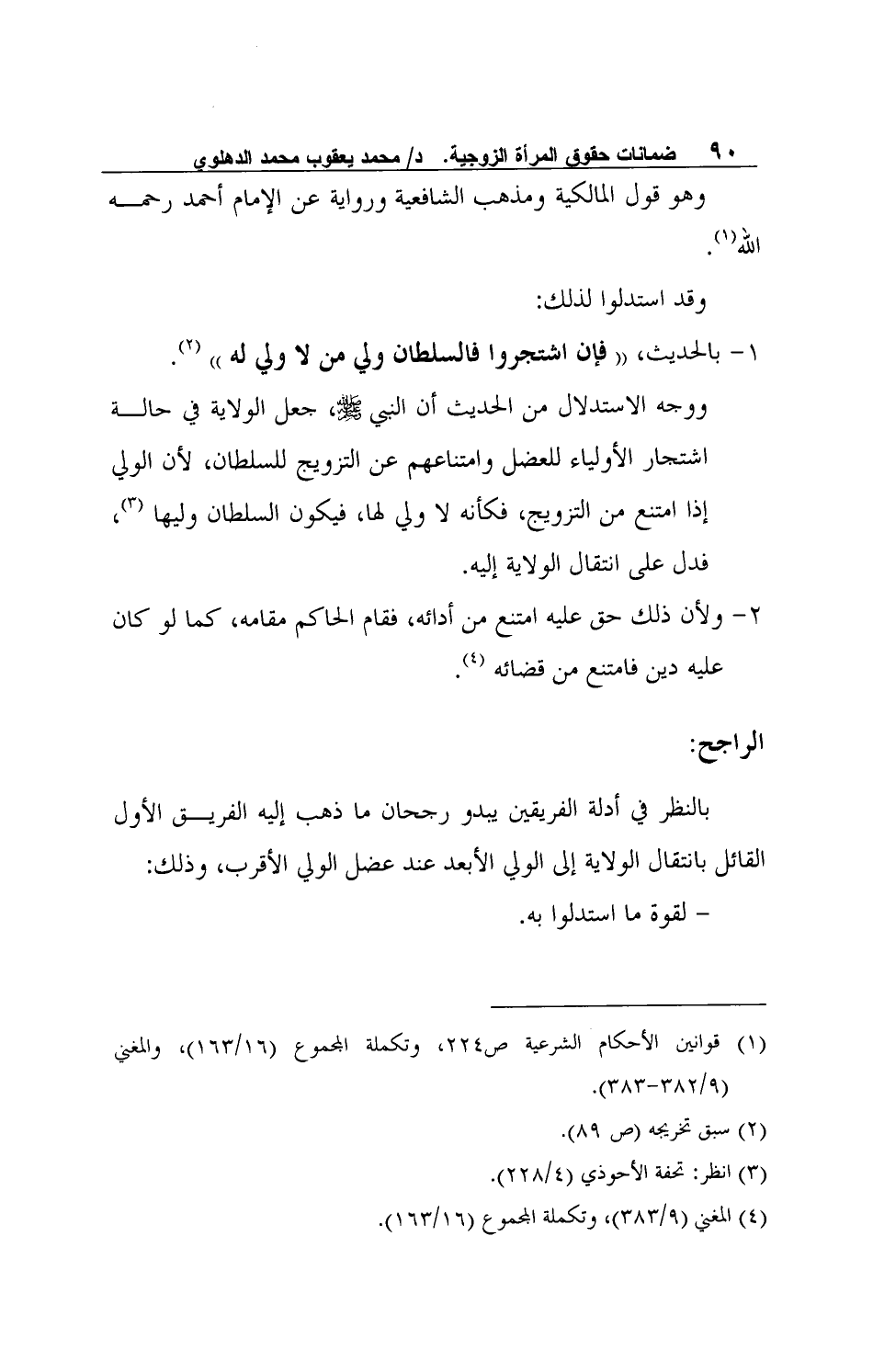 بالنظر في أدلة الفريقين يبدو رجحان ما ذهب إليه الفريق الأول القائل بانتقال الولاية إلى الولي الأبعد عند عضل الولي الأقرب، وذلك: