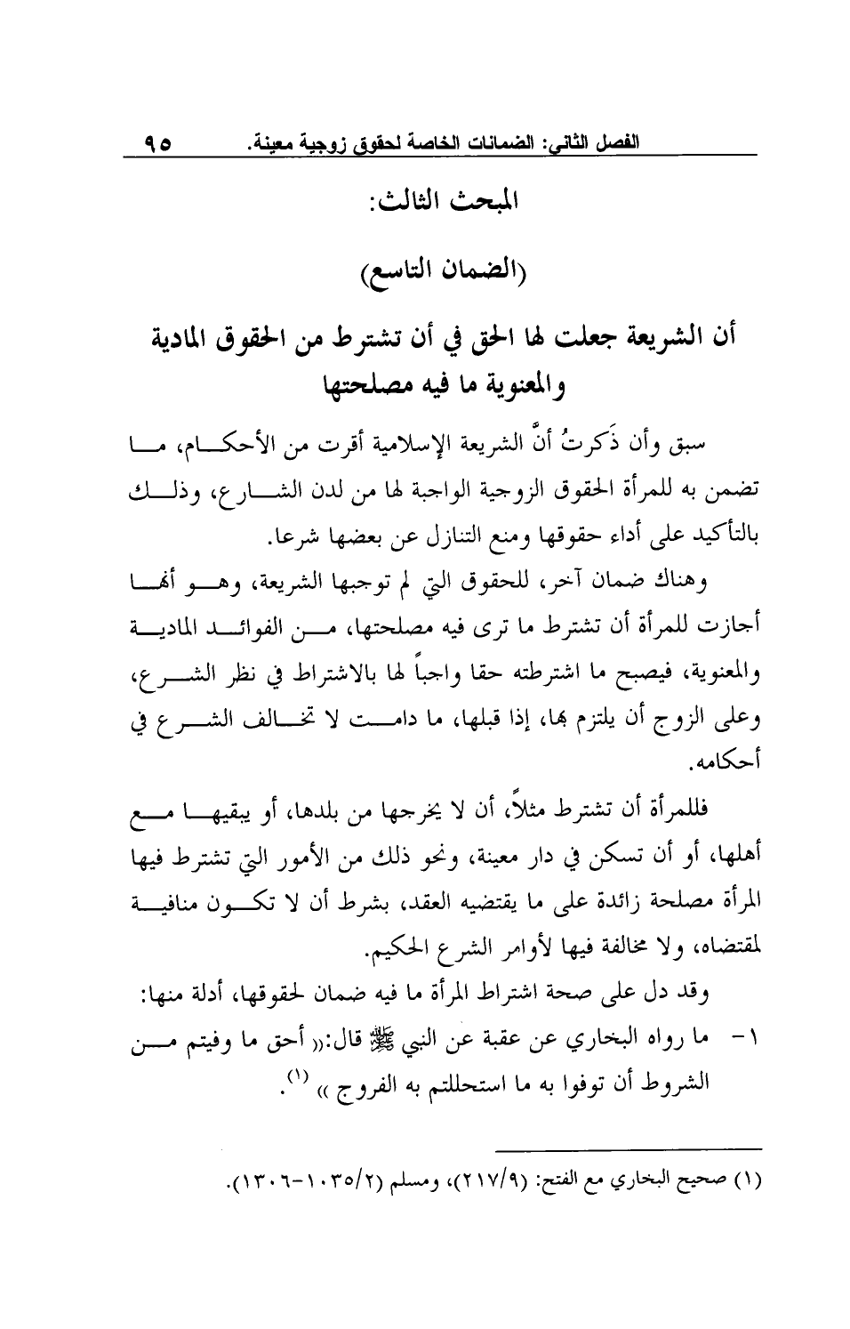المبحث الثالث: (الضمان التاسع) : أن الشريعة جعلت لها الحق في أن تشترط من الحقوق المادية والمعنوية ما فيه مصلحتها