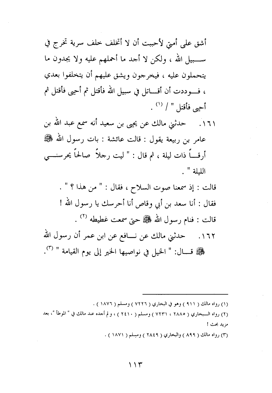 160 - حَدثنِي مَالك عَن نَافِع عَن ابْن عمر أَن رَسُول الله صلى الله عَلَيْهِ وَسلم قَالَ الْخَيل فِي نَوَاصِيهَا الْخَيْر إِلَى يَوْم الْقِيَامَة