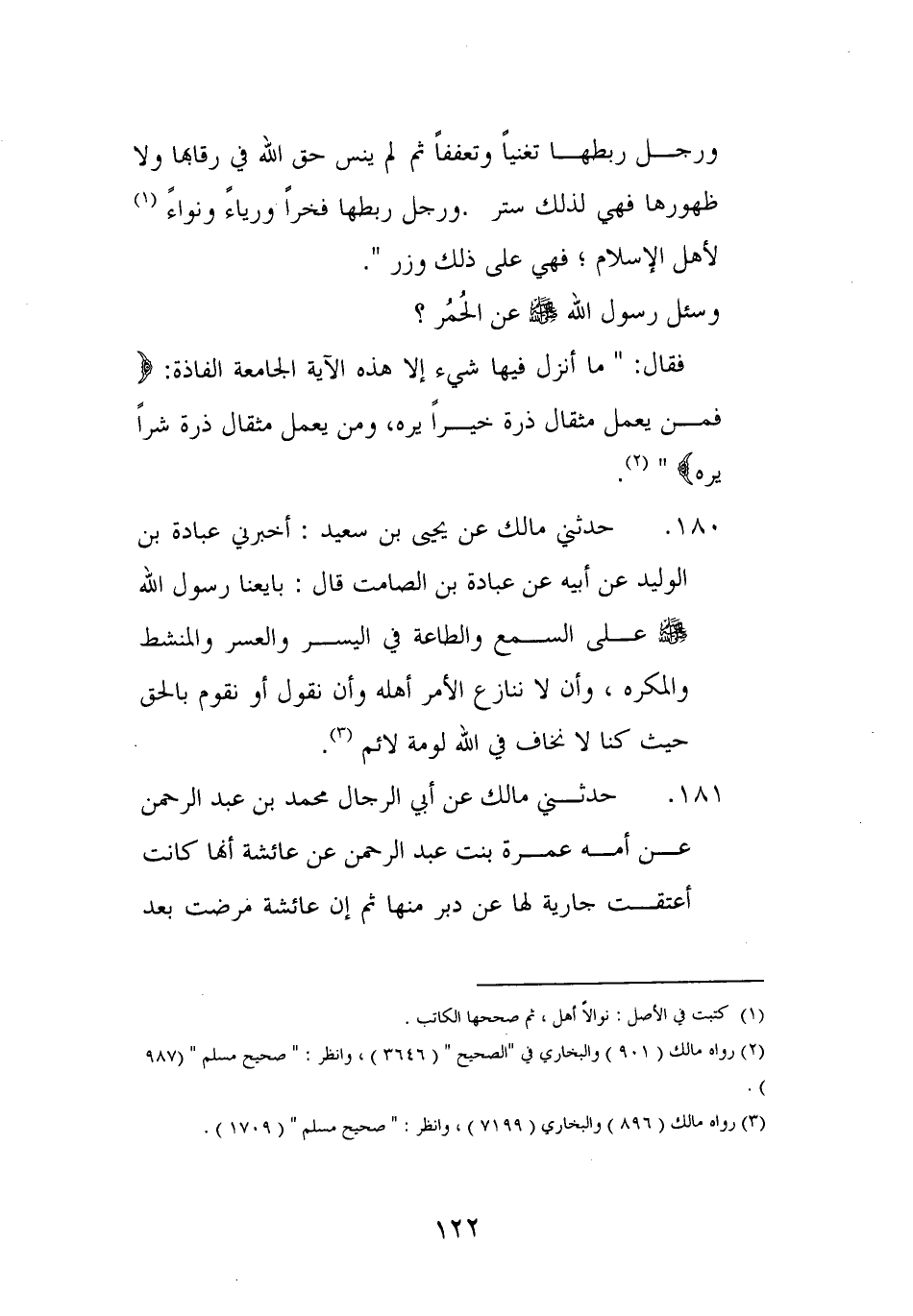 177 - حَدثنِي مَالك عَن يحيى بن سعيد أَخْبرنِي عبَادَة بن الْوَلِيد عَن أَبِيه عَن عبَادَة بن الصَّامِت قَالَ بَايعنَا رَسُول الله صلى الله عَلَيْهِ وَسلم على السّمع وَالطَّاعَة فِي الْيُسْر والعسر والمنشط وَالْمكْره وَأَن لَا ننازع الْأَمر أَهله وَأَن نقُول أَو نقوم بِالْحَقِّ حَيْثُ كُنَّا لَا نَخَاف فِي الله لومة لائم