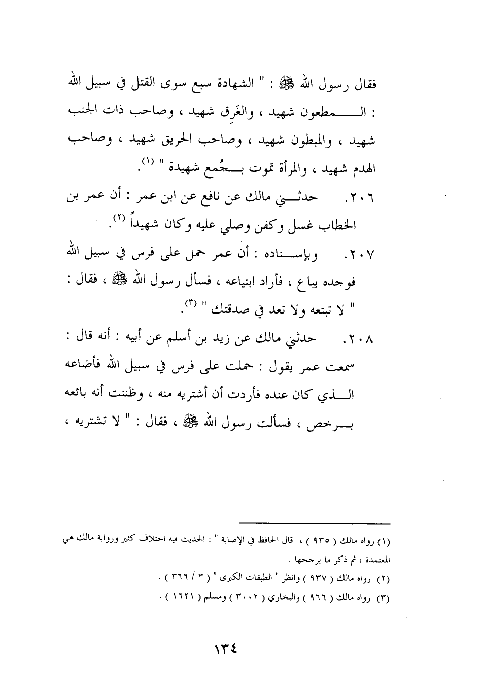 205 - حَدثنِي مَالك عَن زيد بن أسلم عَن أَبِيه أَنه قَالَ سَمِعت عمر يَقُول حملت على فرس فِي سَبِيل الله فأضاعه الَّذِي كَانَ عِنْده فَأَرَدْت أَن أشتريه مِنْهُ وظننت أَنه بَائِعه برخص فَسَأَلت رَسُول الله صلى الله عَلَيْهِ وَسلم فَقَالَ لَا تشتريه