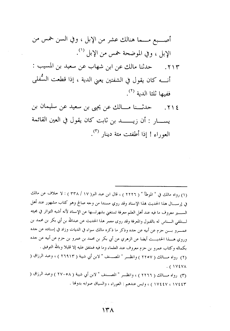 211 - حَدثنَا مَالك عَن يحيى بن سعيد عَن سُلَيْمَان بن يسَار أَن زيد بن ثَابت كَانَ يَقُول فِي الْعين الْقَائِمَة العوراء إِذا أطفئت مائَة دِينَار