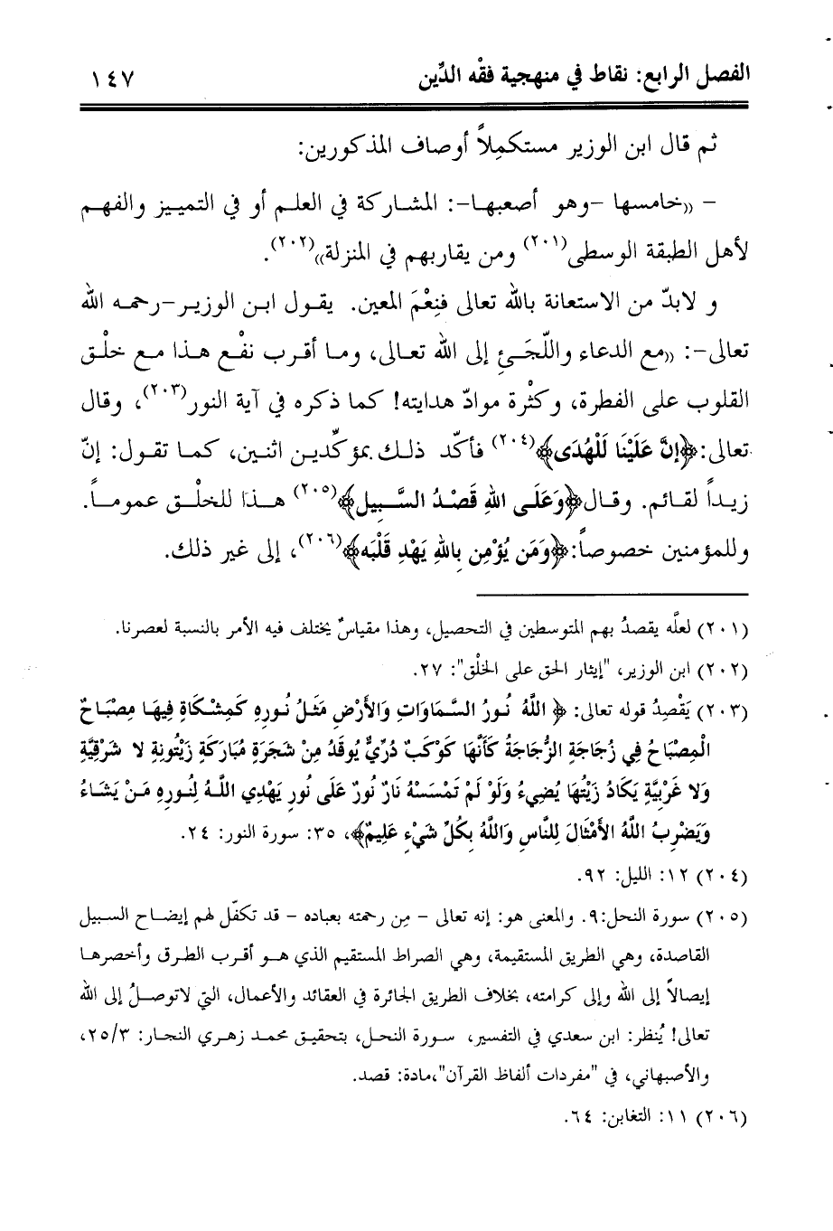 (5) سورة النحل:9. والمعنى هو: إنه تعالى - مِن رحمته بعباده - قد تكفّل لهم إيضاح السبيل القاصدة، وهي الطريق المستقيمة، وهي الصراط المستقيم الذي هو أقرب الطرق وأخصرها إيصالاً إلى الله وإلى كرامته، بخلاف الطريق الجائرة في العقائد والأعمال، التي لاتوصلُ إلى الله تعالى! يُنظر: ابن سعدي في التفسير، سورة النحل، بتحقيق محمد زهري النجار: 3/25، والأصبهاني، في "مفردات ألفاظ القرآن"،مادة: قصد.