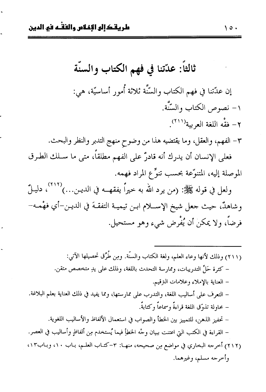 إن عدّتنا في فهم الكتاب والسّنَّة ثلاثة أُمور أساسيّة، هي: