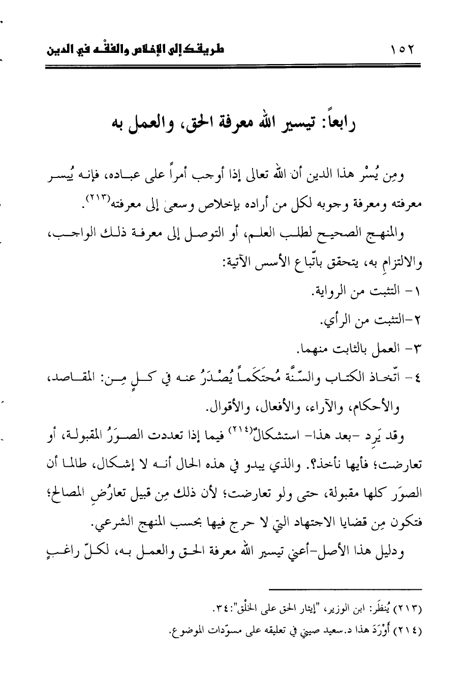 ومِن يُسْر هذا الدين أن الله تعالى إذا أوجب أمراً على عباده، فإنه يُيسر معرفته ومعرفة وجوبه لكل من أراده بإخلاص وسعى إلى معرفته"1".