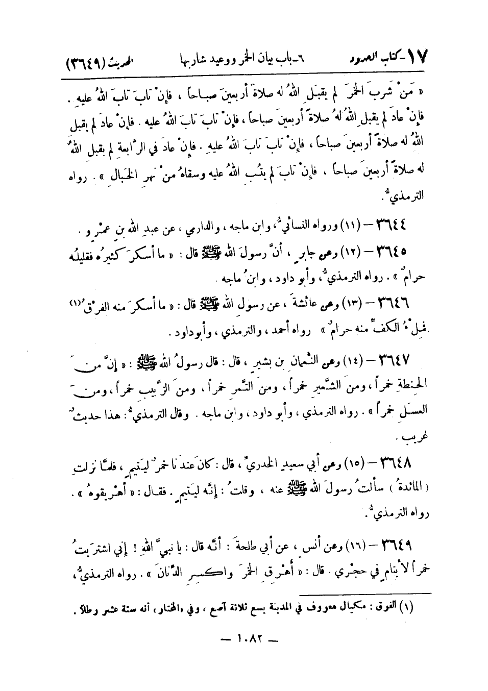 وَعَنِ النُّعْمَانِ بْنِ بَشِيرٍ قَالَ: قَالَ رَسُولُ اللَّهِ صَلَّى اللَّهُ عَلَيْهِ وَسَلَّمَ: «إِنَّ مِنْ الْحِنْطَةِ خَمْرًا وَمِنَ الشَّعِيرِ خَمْرًا وَمِنَ التَّمْرِ خَمْرًا وَمِنَ الزَّبِيبِ خَمْرًا وَمِنَ الْعَسَلِ خَمْرًا» . رَوَاهُ التِّرْمِذِيُّ وَأَبُو دَاوُدَ وَابْنُ مَاجَهْ وَقَالَ التِّرْمِذِيُّ: هَذَا حَدِيثٌ غَرِيبٌ