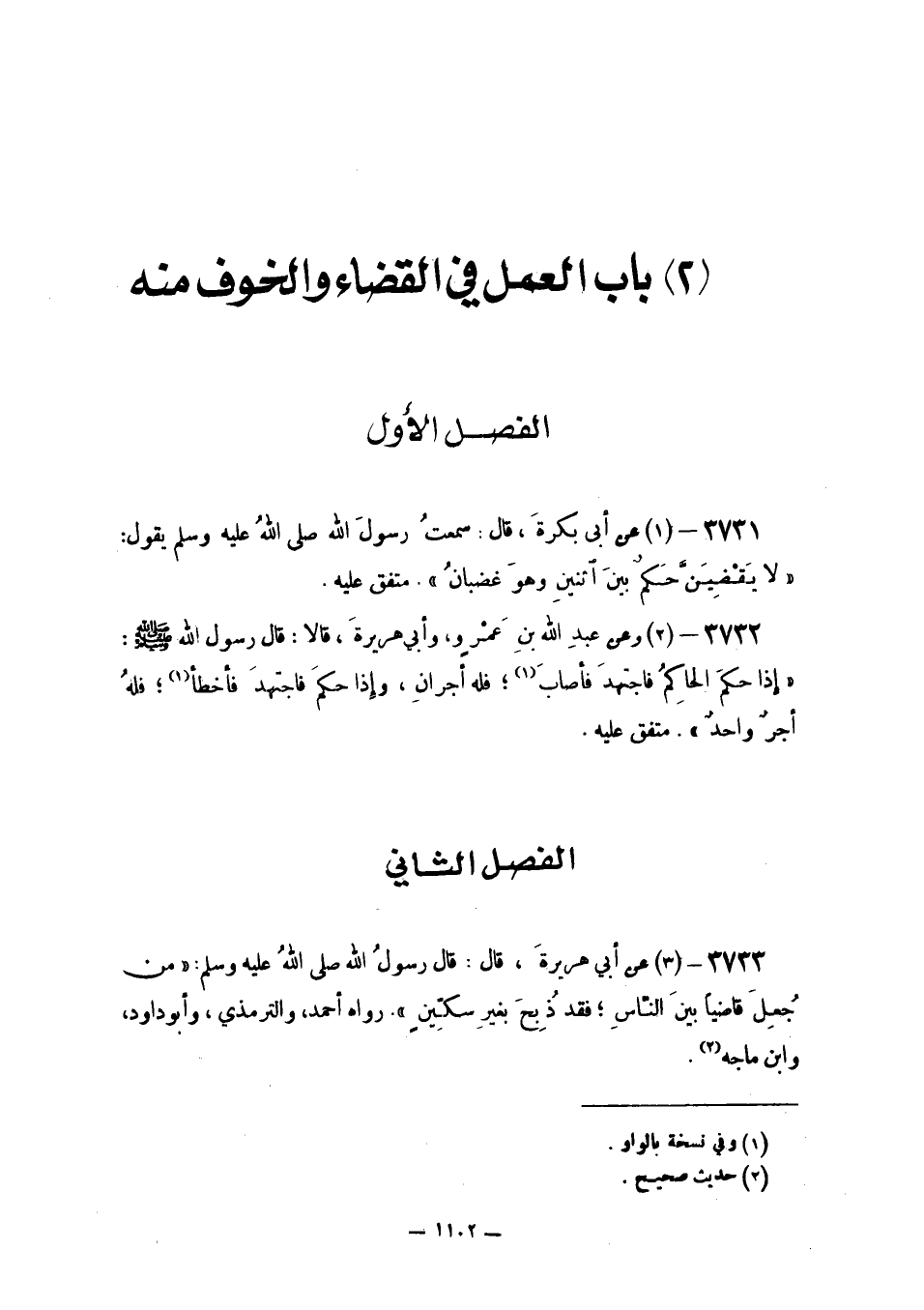 عَنْ أَبِي بَكْرَةَ قَالَ سَمِعْتُ رَسُولَ اللَّهِ صَلَّى اللَّهُ عَلَيْهِ وَسَلَّمَ يَقُولُ: «لَا يَقْضِيَنَّ حَكَمٌ بَيْنَ اثْنَيْنِ وَهُوَ غَضْبَانُ»