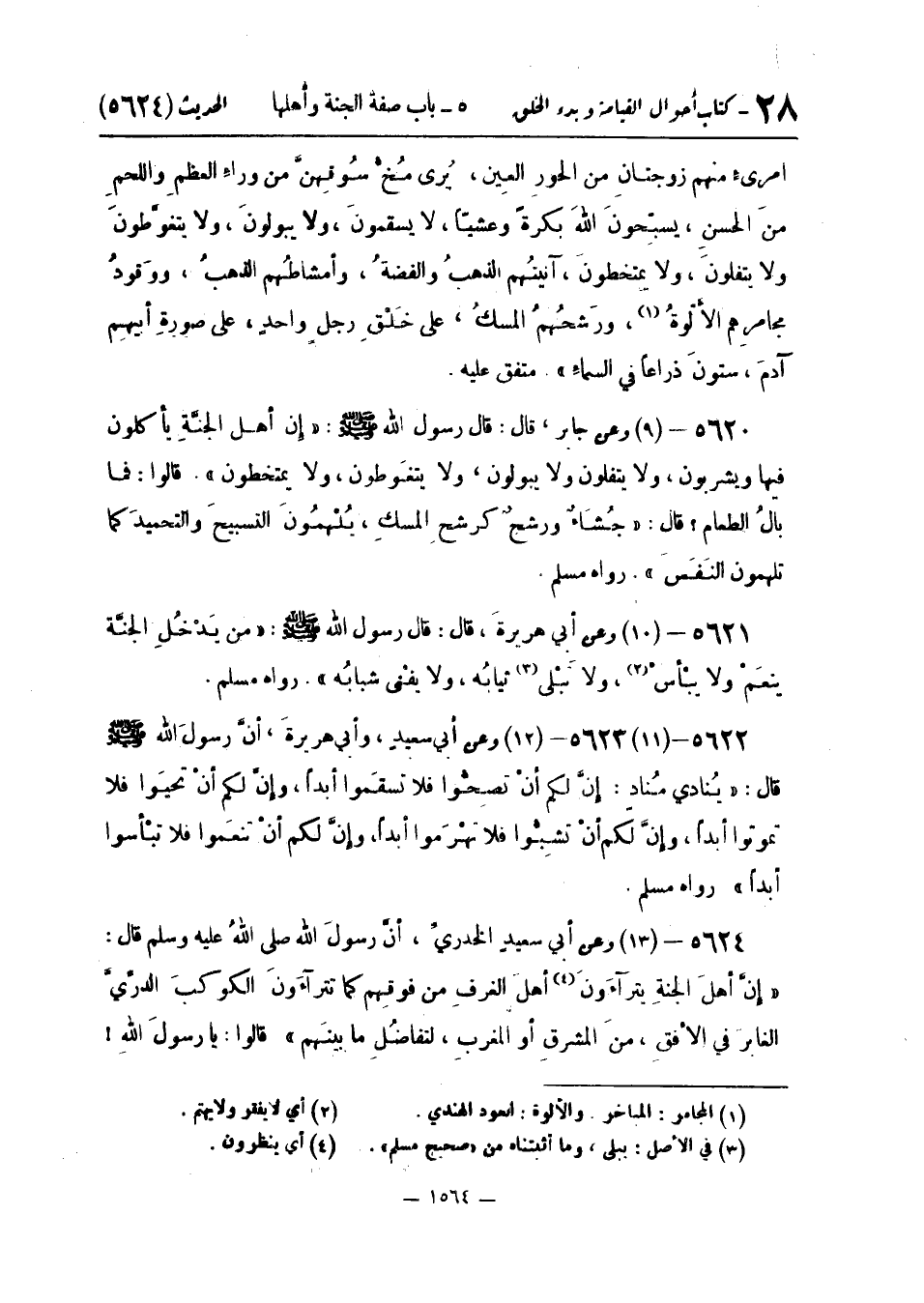 وَأَبِي هُرَيْرَةَ أَنَّ رَسُولَ اللَّهِ صَلَّى اللَّهُ عَلَيْهِ وَسَلَّمَ قَالَ: " يُنَادِي مُنَادٍ: إِنَّ لَكُمْ أَنْ تَصِحُّوا فَلَا تَسْقَمُوا أَبَدًا وَإِنَّ لَكُمْ أَنْ تَحْيَوْا فَلَا تَمُوتُوا أَبَدًا وَإِنَّ لَكُمْ أَنْ تَشِبُّوا فَلَا تَهْرَمُوا أَبَدًا وَإِنَّ لَكُمْ أَنْ تَنْعَمُوا فَلَا تَبْأَسُوا أبدا " رَوَاهُ مُسلم