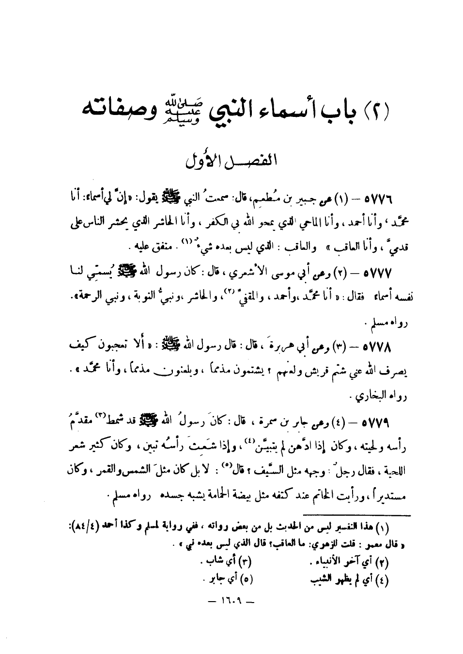 [2] بَابِ أَسْمَاءِ النَّبِيِّ صَلَّى اللَّهُ عَلَيْهِ وَسَلَّمَ وَصِفَاته