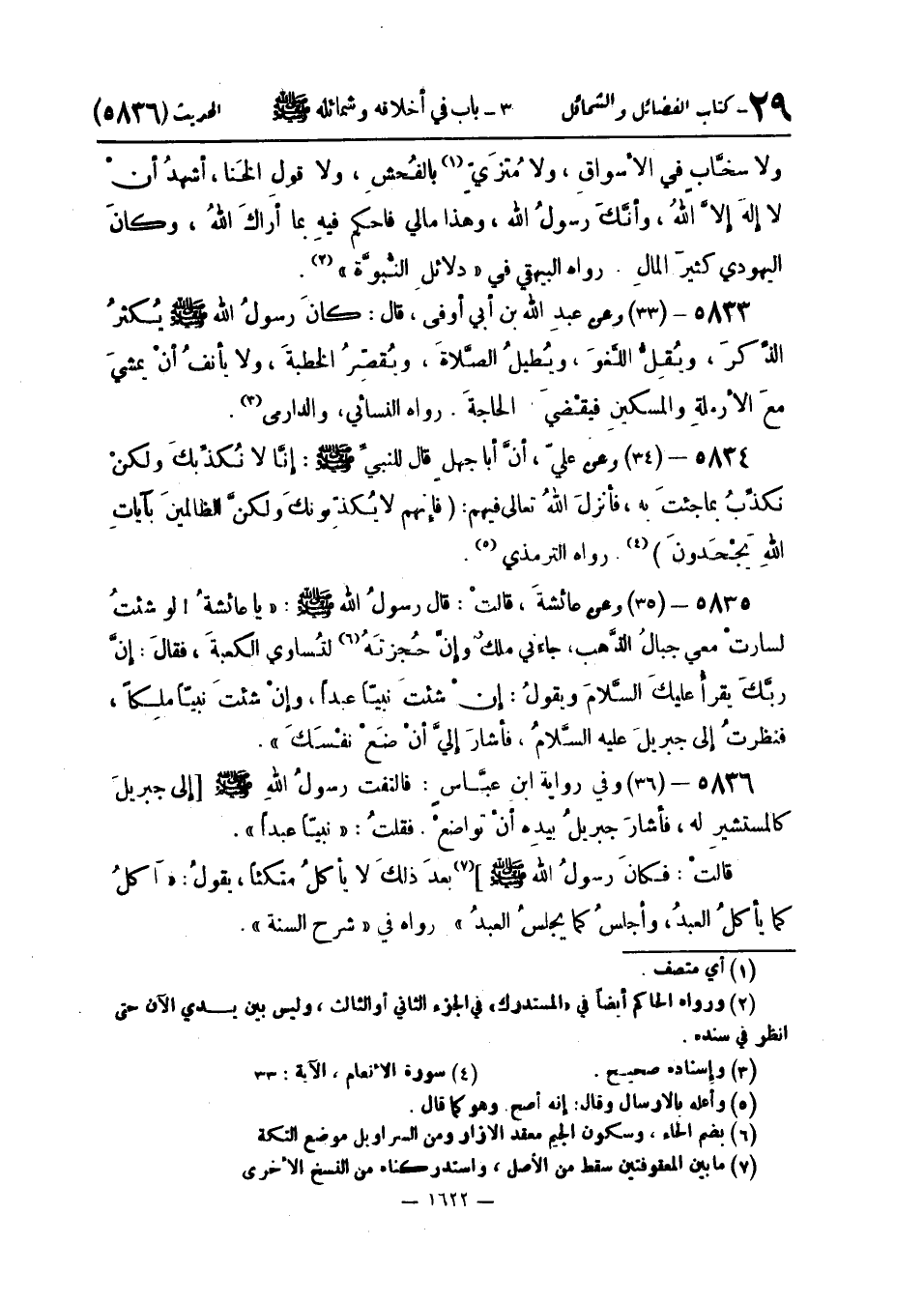 ابْن عبَّاسٍ: فَالْتَفَتَ رَسُولُ اللَّهِ صَلَّى اللَّهُ عَلَيْهِ وَسَلَّمَ إِلَى جِبْرِيلَ كَالْمُسْتَشِيرِ لَهُ فَأَشَارَ جِبْرِيلُ بِيَدِهِ أَنْ تَوَاضَعْ. فَقُلْتُ: «نَبِيًّا عَبْدًا»