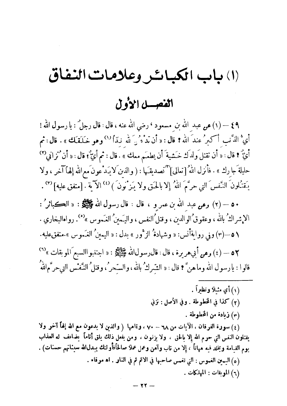بَاب الْكَبَائِر وعلامات النِّفَاق