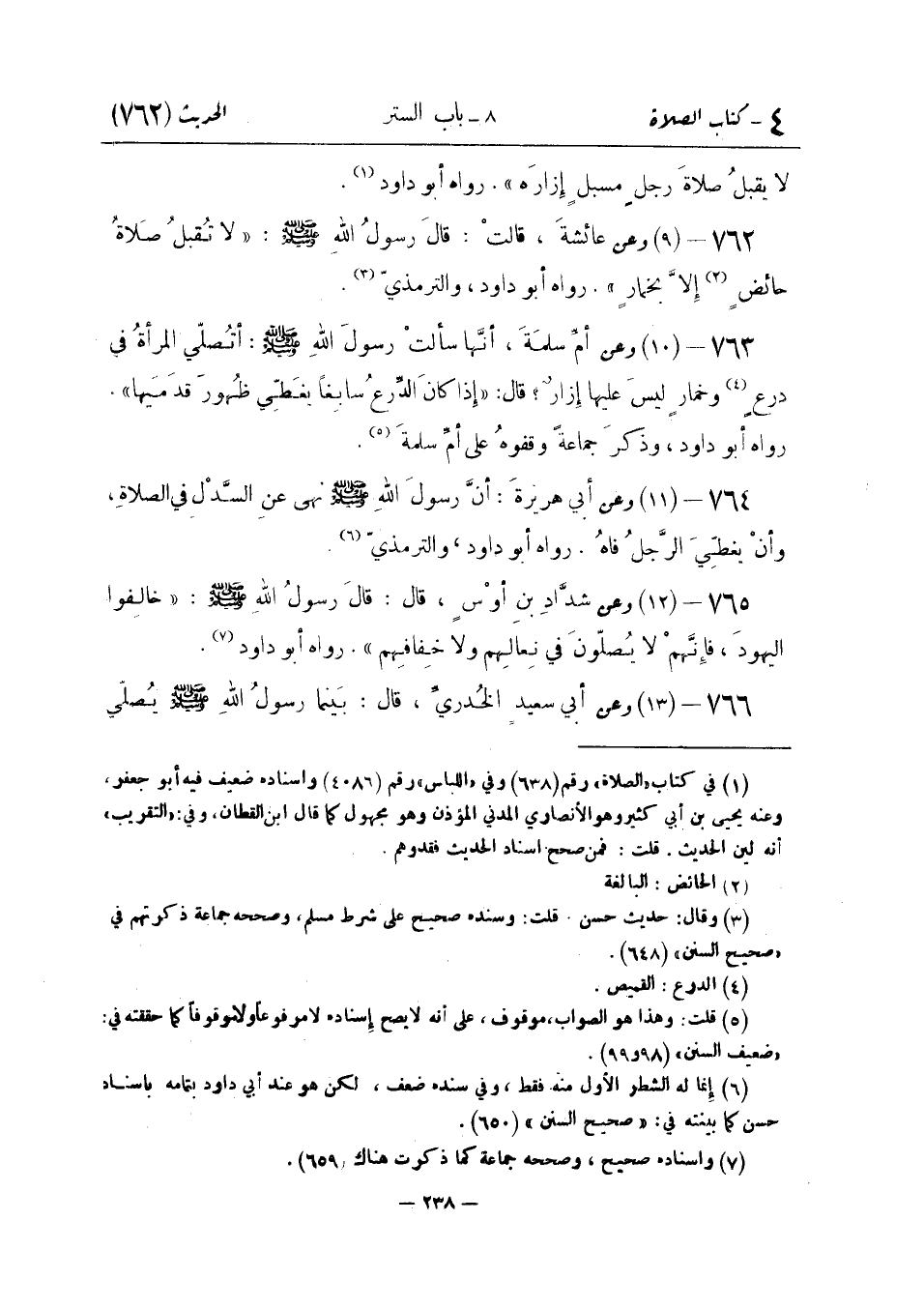 وَعَنْ عَائِشَةَ رَضِيَ اللَّهُ عَنْهَا قَالَتْ: قَالَ رَسُولُ اللَّهِ صَلَّى اللَّهُ عَلَيْهِ وَسَلَّمَ: «لَا تُقْبَلُ صَلَاةُ حَائِضٍ إِلَّا بِخِمَارٍ» . رَوَاهُ أَبُو دَاوُد وَالتِّرْمِذِيّ