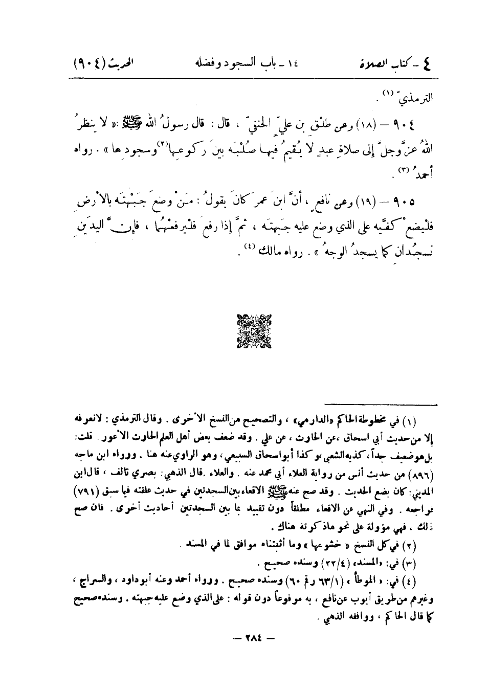 وَعَن طلق بن عَليّ الْحَنَفِيّ قَالَ: قَالَ رَسُولُ اللَّهِ صَلَّى اللَّهُ عَلَيْهِ وَسَلَّمَ: «لَا يَنْظُرُ اللَّهُ عَزَّ وَجَلَّ إِلَى صَلَاةِ عَبْدٍ لَا يُقِيمُ فِيهَا صُلْبَهُ بَيْنَ ركوعها وسجودها» . رَوَاهُ أَحْمد