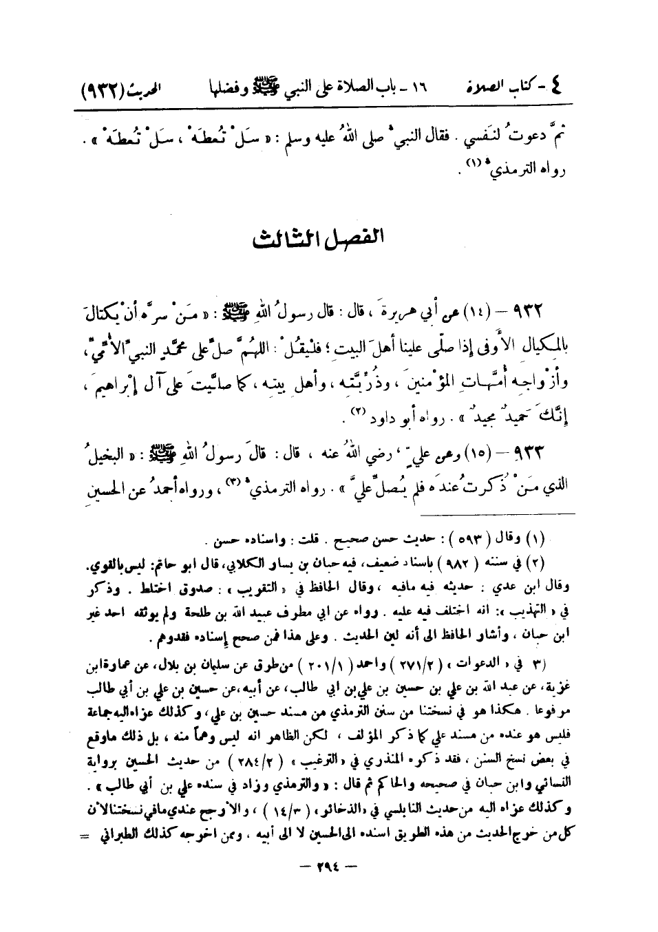 وَعَنْ أَبِي هُرَيْرَةَ عَنِ النَّبِيِّ صَلَّى اللَّهُ عَلَيْهِ وَسَلَّمَ قَالَ: «مَنْ سَرَّهُ أَنْ يَكْتَالَ بِالْمِكْيَالِ الْأَوْفَى إِذَا صَلَّى عَلَيْنَا أَهْلَ الْبَيْتِ فَلْيَقُلْ اللَّهُمَّ صَلِّ على مُحَمَّد وَأَزْوَاجِهِ أُمَّهَاتِ الْمُؤْمِنِينَ وَذُرِّيَّتِهِ وَأَهْلِ بَيْتِهِ كَمَا صَلَّيْتَ عَلَى آلِ إِبْرَاهِيمَ إِنَّكَ حُمَيْدٌ مَجِيدٌ» . رَوَاهُ أَبُو دَاوُد
