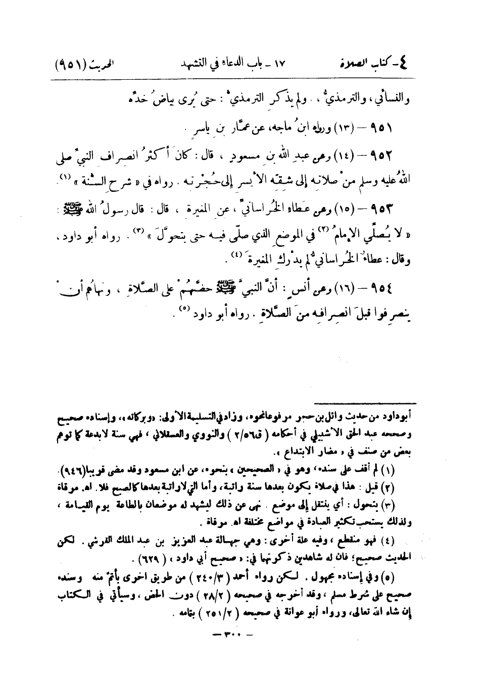 وَعَنْ أَنَسٍ: أَنَّ النَّبِيَّ صَلَّى اللَّهُ عَلَيْهِ وَسَلَّمَ حَضَّهُمْ عَلَى الصَّلَاةِ وَنَهَاهُمْ أَنْ يَنْصَرِفُوا قَبْلَ انْصِرَافِهِ مِنَ الصَّلَاةِ. رَوَاهُ أَبُو دَاوُدَ