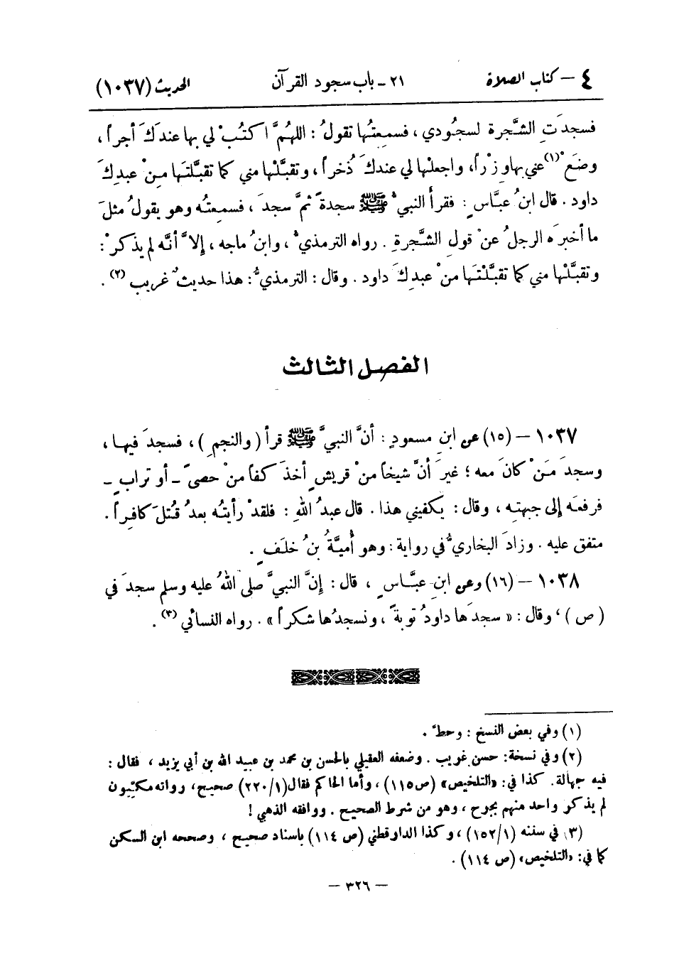 وَعَنِ ابْنِ عَبَّاسٍ قَالَ: إِنَّ النَّبِيَّ صَلَّى اللَّهُ عَلَيْهِ وَسَلَّمَ سَجَدَ فِي (ص)