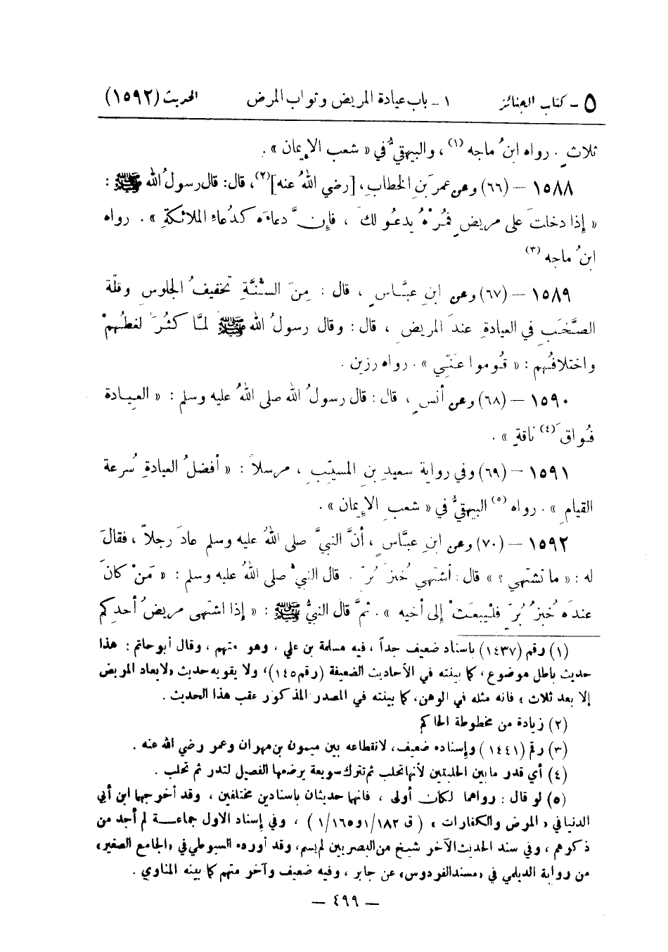 وَعَنِ ابْنِ عَبَّاسٍ قَالَ: مِنَ السُّنَّةِ تَخْفِيفُ الْجُلُوسِ وَقِلَّةُ الصَّخَبِ فِي الْعِيَادَةِ عِنْدَ الْمَرِيضِ قَالَ: وَقَالَ رَسُولُ اللَّهِ صَلَّى اللَّهُ عَلَيْهِ وَسَلَّمَ لَمَّا كَثُرَ لَغَطُهُمْ وَاخْتِلَافُهُمْ: «قُومُوا عَنِّي» رَوَاهُ رزين