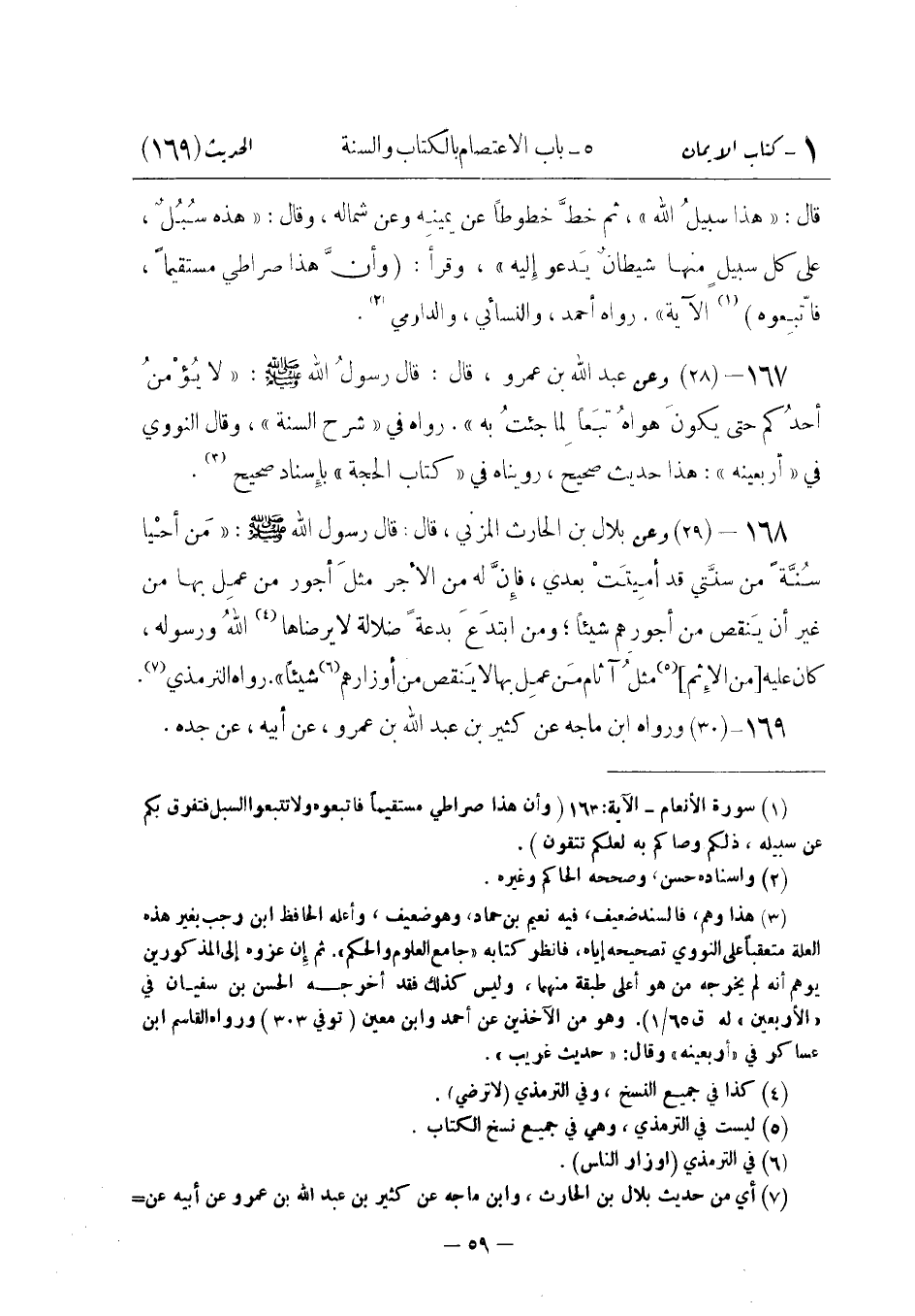 وَعَنْ عَبْدِ اللَّهِ بْنِ عَمْرٍو قَالَ: قَالَ رَسُولُ اللَّهِ صَلَّى اللَّهُ عَلَيْهِ وَسَلَّمَ: «لَا يُؤْمِنُ أَحَدُكُمْ حَتَّى يَكُونَ هَوَاهُ تَبَعًا لِمَا جِئْتُ بِهِ» رَوَاهُ فِي شَرْحِ السُّنَّةَ وَقَالَ النَّوَوِيُّ فِي أَرْبَعِينِهِ: هَذَا حَدِيثٌ صَحِيحٌ رَوَيْنَاهُ فِي كتاب الْحجَّة بِإِسْنَاد صَحِيح