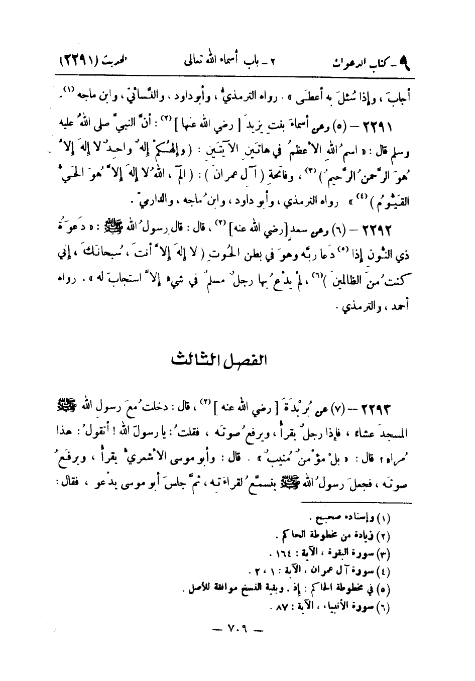 لَمْ يَدْعُ بِهَا رَجُلٌ مُسْلِمٌ فِي شَيْءٍ إلاَّ استجابَ لَهُ ". رَوَاهُ أَحْمد وَالتِّرْمِذِيّ