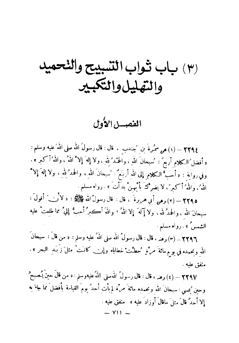 عَنْ سَمُرَةَ بْنِ جُنْدُبٍ قَالَ: قَالَ رَسُولُ اللَّهِ صَلَّى اللَّهُ عَلَيْهِ وَسَلَّمَ: " أَفْضَلُ الْكَلَامِ أَرْبَعٌ: سُبْحَانَ اللَّهِ وَالْحَمْدُ لِلَّهِ وَلَا إِلَهَ إِلَّا اللَّهُ وَاللَّهُ أَكْبَرُ "