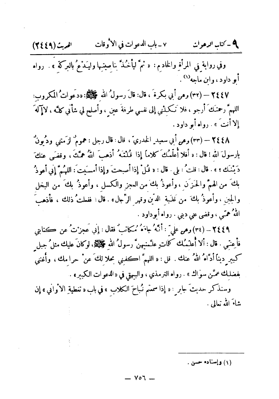 وَعَنْ أَبِي سَعِيدٍ الْخُدْرِيِّ قَالَ: قَالَ رَجُلٌ: هُمُومٌ لَزِمَتْنِي وَدُيُونٌ يَا رَسُولَ اللَّهِ قَالَ: «أَفَلَا أُعَلِّمُكَ كَلَامًا إِذَا قُلْتَهُ أَذْهَبَ اللَّهُ هَمَّكَ وَقَضَى عَنْكَ دَيْنَكَ؟» قَالَ: قُلْتُ: بَلَى قَالَ: " قُلْ إِذَا أَصْبَحْتَ وَإِذَا أَمْسَيْتَ: اللَّهُمَّ إِنِّي أَعُوذُ بِكَ مِنَ الْهَمِّ وَالْحُزْنِ وَأَعُوذُ بِكَ مِنْ غَلَبَةِ الدَّيْنِ وَقَهْرِ الرِّجَالِ ". قَالَ: فَفعلت ذَلِك فَأذْهب الله همي وَقضى عَن ديني. رَوَاهُ أَبُو دَاوُد