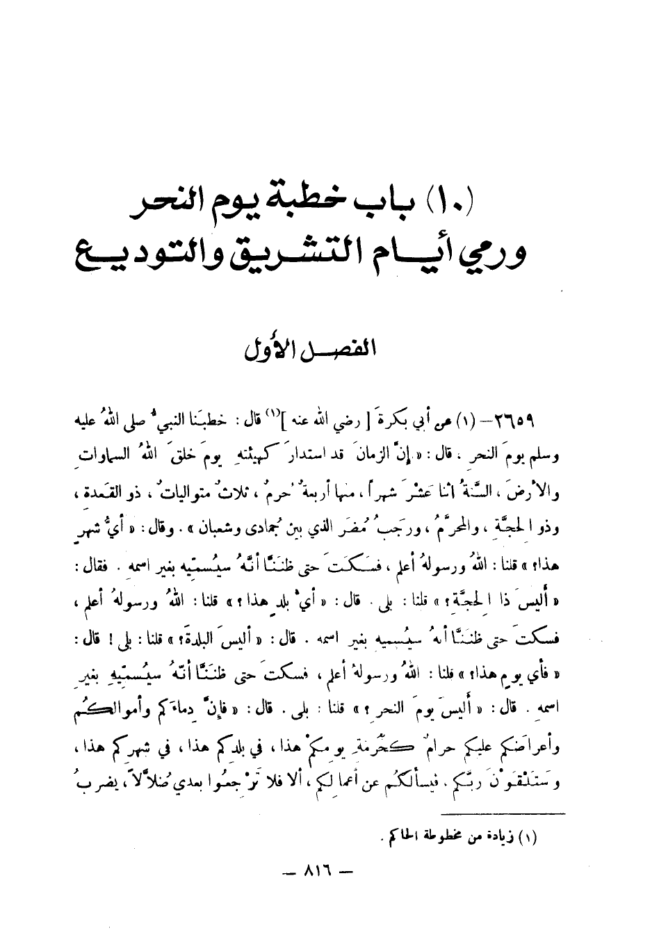 بَابٌ خُطْبَةُ يَوْمِ النَّحْرِ