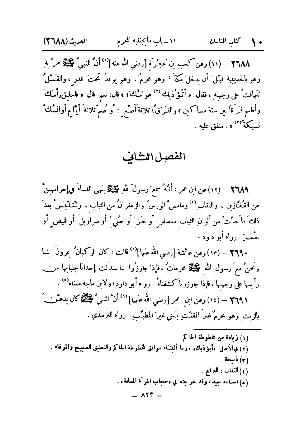 وَعَنِ ابْنِ عُمَرَ رَضِيَ اللَّهُ عَنْهُمَا أَنَّ النَّبِيَّ صَلَّى اللَّهُ عَلَيْهِ وَسَلَّمَ كَانَ يَدَّهِنُ بالزيت وَهُوَ محرمٌ غيرَ المقنّتِ يَعني غيرَ المطيَّبِ. رَوَاهُ التِّرْمِذِيّ