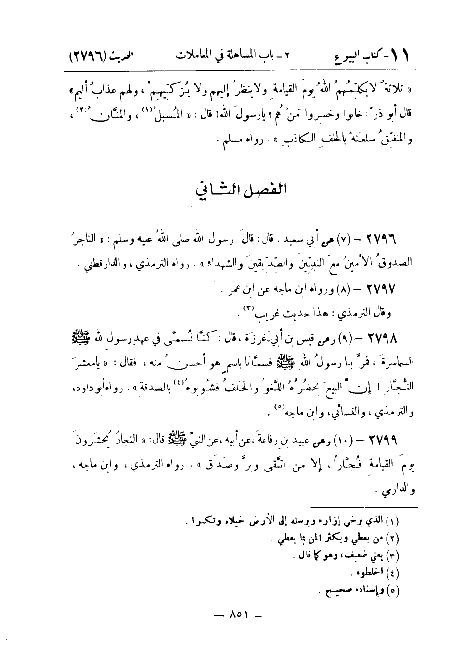 عَنْ أَبِي سَعِيدٍ قَالَ: قَالَ رَسُولُ اللَّهِ صَلَّى اللَّهُ عَلَيْهِ وَسَلَّمَ: «التَّاجِرُ الصَّدُوقُ الْأَمِينُ معَ النبِّيِينَ والصِّدِّيقينَ والشهداءِ» . رَوَاهُ التِّرْمِذِيّ وَالدَّارَقُطْنِيّ.