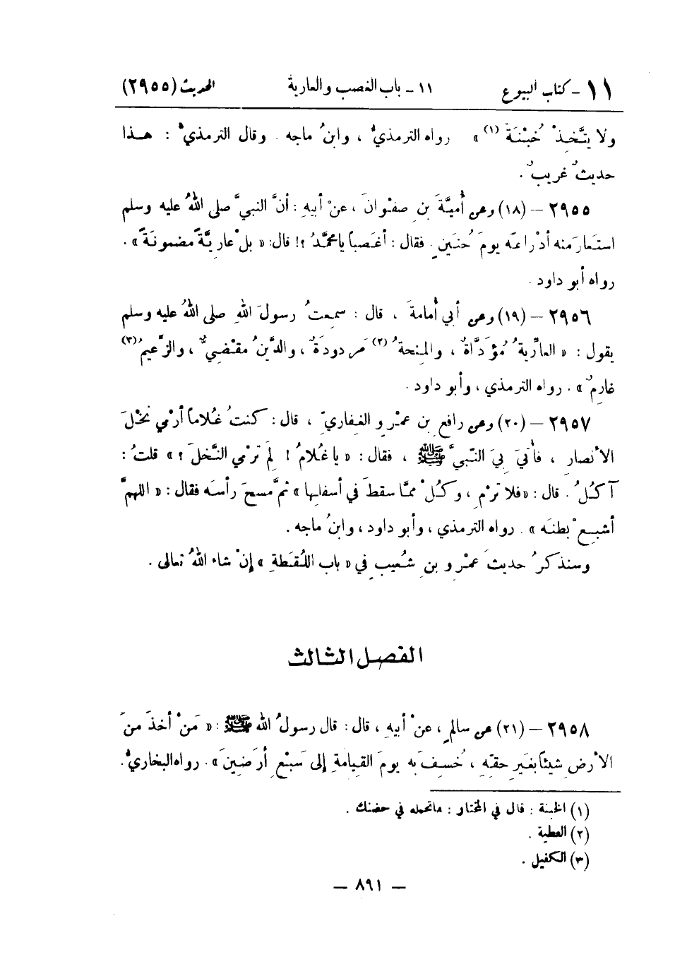وَعَنْ أَبِي أُمَامَةَ قَالَ: سَمِعْتُ رَسُولَ اللَّهِ صَلَّى اللَّهُ عَلَيْهِ وَسَلَّمَ يَقُولُ: «الْعَارِيَةُ مُؤَدَّاةٌ وَالْمِنْحَةٌ مَرْدُودَةٌ وَالدَّيْنُ مَقْضِيٌّ وَالزَّعِيمُ غَارِمٌ» . رَوَاهُ النرمذي وَأَبُو دَاوُد