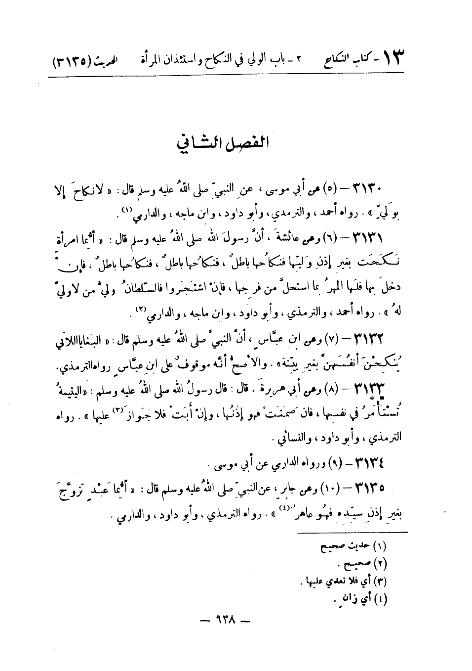 عَن أَبِي مُوسَى عَنِ النَّبِيِّ صَلَّى اللَّهُ عَلَيْهِ وَسَلَّمَ قَالَ: «لَا نِكَاحَ إِلَّا بِوَلِيٍّ» . رَوَاهُ أَحْمَدُ وَالتِّرْمِذِيُّ وَأَبُو دَاوُدَ وَابْنُ مَاجَهْ وَالدَّارِمِيُّ